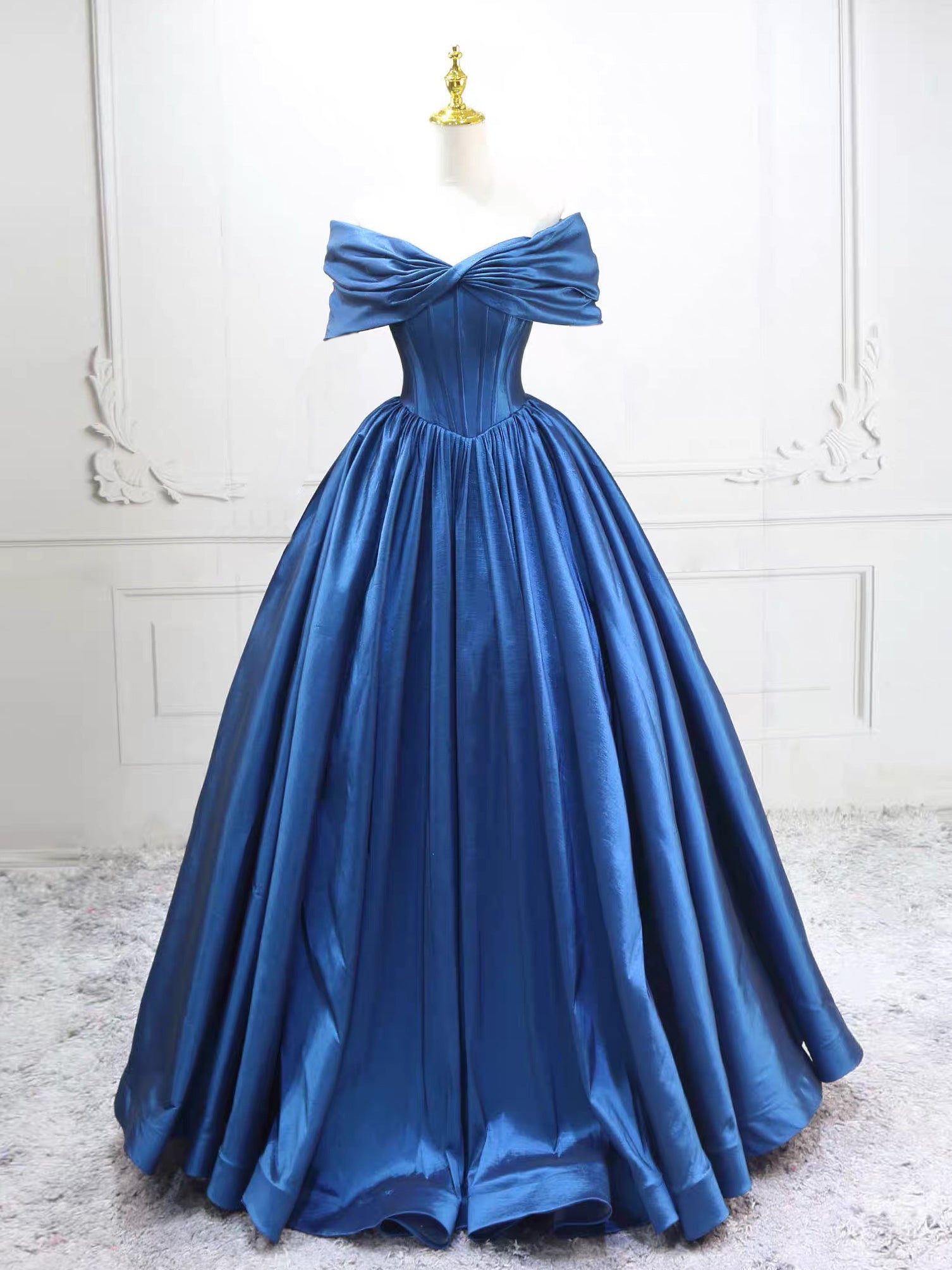 A-Line Off Shoulder Taffeta Blue Long Prom Dress, Taffeta Long Evening Dress