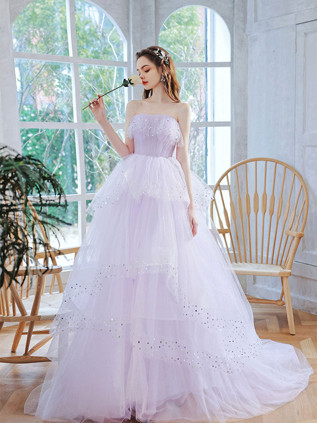 Purple Long Prom Dress, Tulle Sequin Long Purple Sweet 16 Dresses