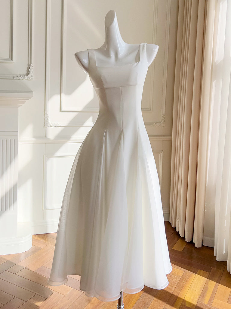 Simple A-Line Chiffon Short ivory Prom Dress, Simple ivory Bridesmaid Dress