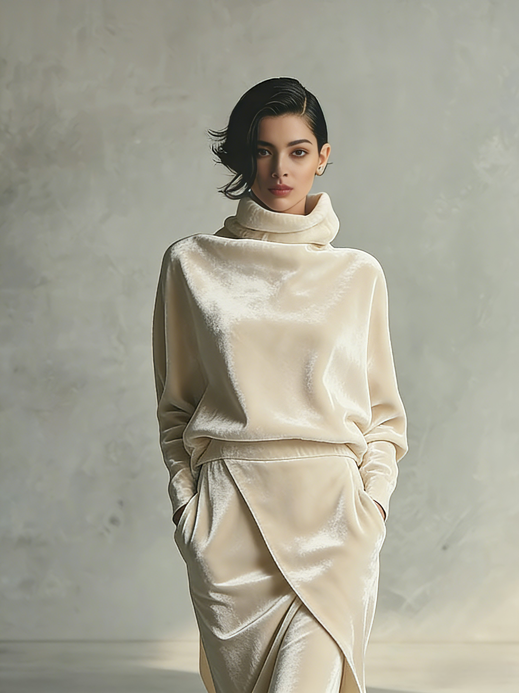 Step into refined fall/winter style with this faux suede cardigan and skirt set, crafted from a smooth velvet-touch fabric that feels soft, warm, and luxurious against the skin. The wrap neckline adds effortless sophistication, while the matching skirt creates a clean, feminine silhouette.